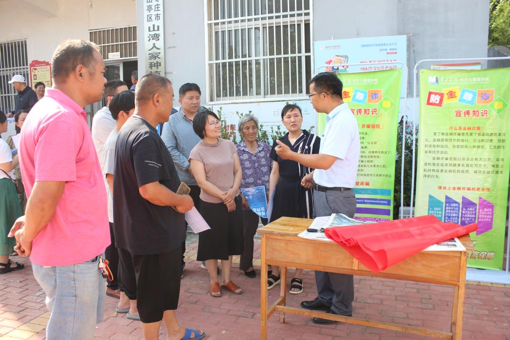 烈日似火,夏日炎炎,KY开元集团官网入口一行首先来到风景如画的云峰村,在村民委员会开展以“守住钱袋子,护好幸福家”为主题的座谈交流活动,为大家生动形象地讲解当下常见的诈骗手段,沟通分享反诈骗经验与预防措施。随后在伏山湾村,通过发放宣传物料、现场宣讲等多种形式介绍非法集资的危害,提高村民的自我保护能力和防范意识,提醒大家守好自己的钱袋子。
